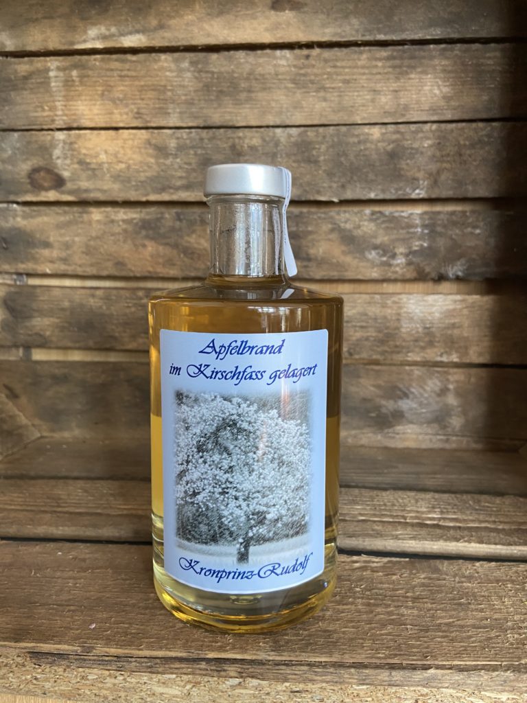 Apfelbrand 500 ml Martin Grubelnik vor 6 Jahren Apfelbrand-Kronprinz Rudolf im Krischfass gelagert, 500 ml, alc. 42 % vol.